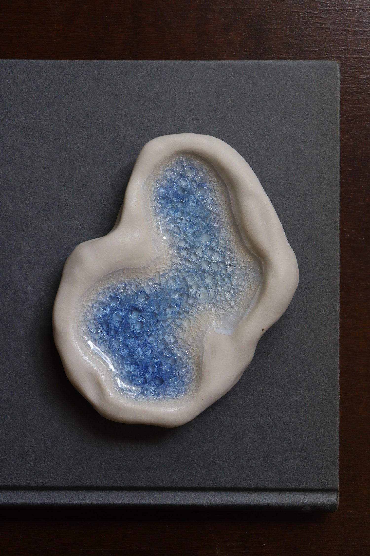 Through dedicated practices of experimentation and testing, Jasmine formulates the glaze for every rockpool. Each is finished with glass hand-collected from a unique source, diverting precious materials from waste streams.